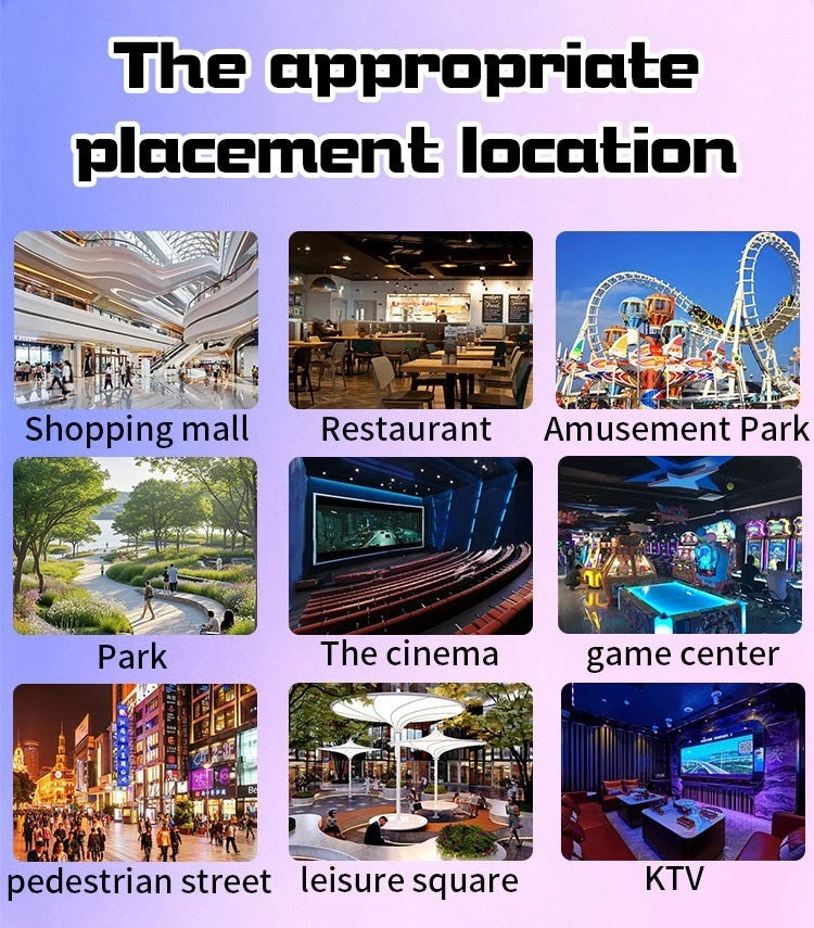 Arcades, bars, convenience stores, malls, game rental companies, and event setups